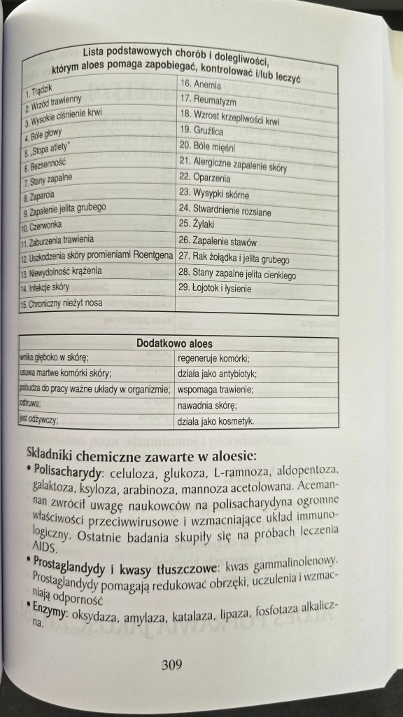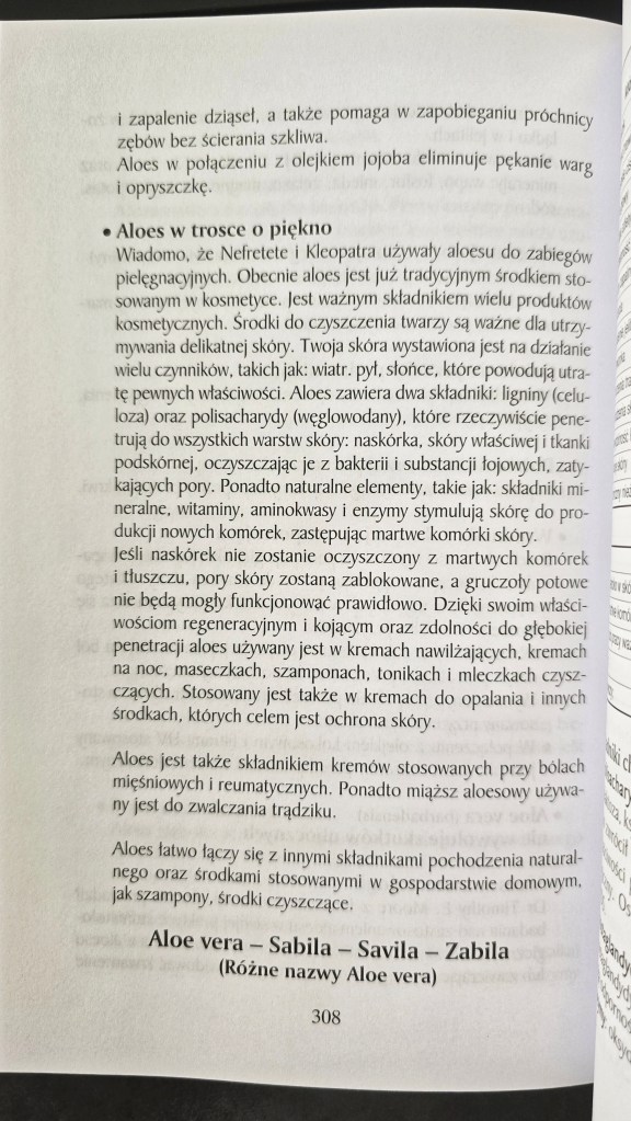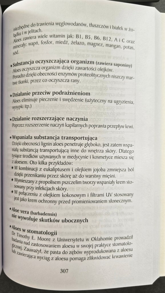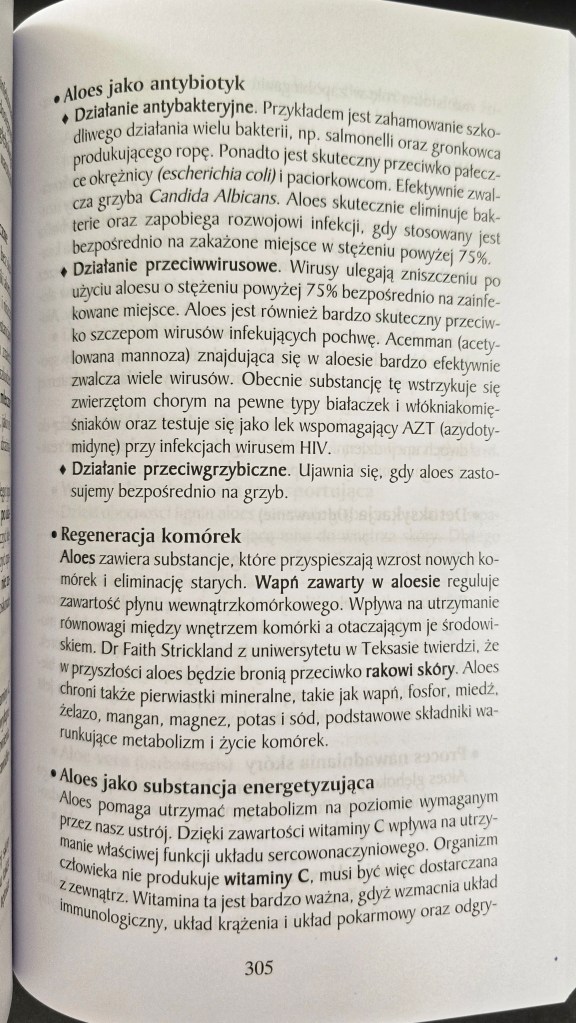 Cytowany fragment to przystępnie podane informacje o właściwościach miąższu aloesowego.